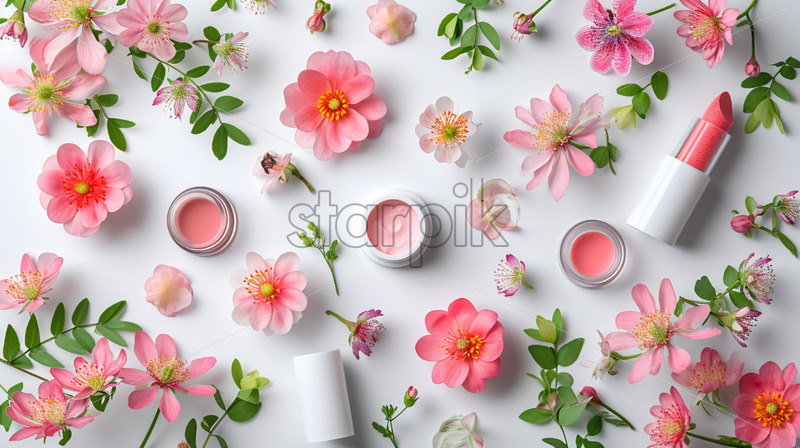 Lip balm stick with vanilla flower on flat lay