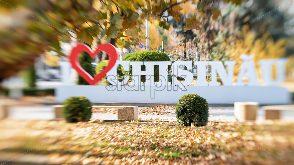 Home » Shop » photo » I love Chisinau installation at autumn, Moldova. Lensbaby effect