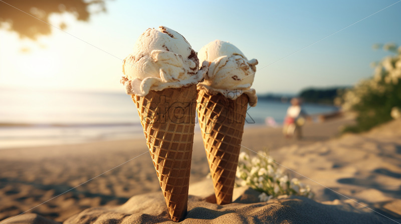 Home » Shop » Uncategorised » Ice cream in cones on a beach
