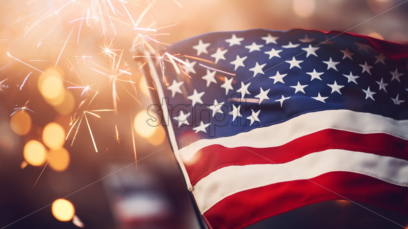 Photo of a man holding with both hands the american flag, for memorial day of 4th of july