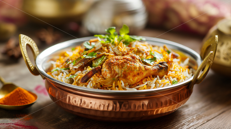 A tantalizing photograph showcasing Indian Chicken Biryani, a fragrant and flavorful rice dish with spiced chicken.