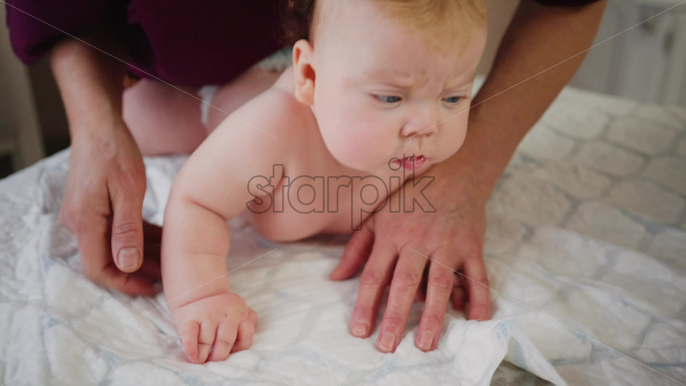 Home » Shop » 1 Video » Infant raising head while supported on tummy, strengthening neck muscles during early development