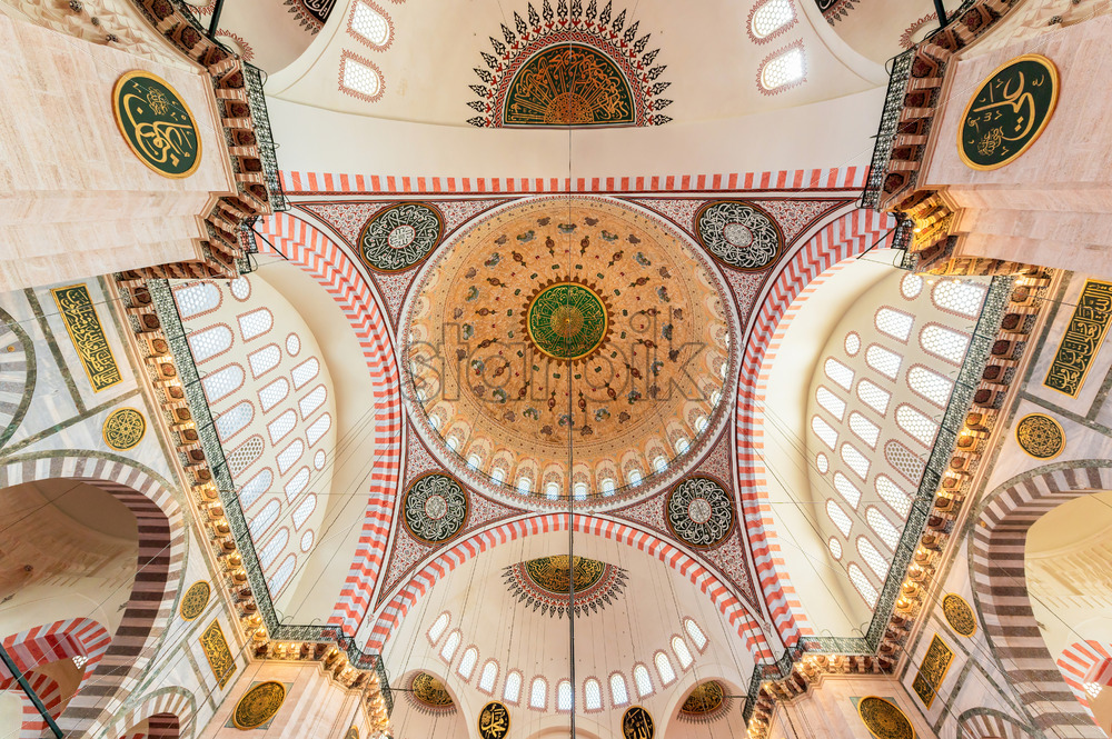 Home » Shop » photo » Interior view of the Suleymaniye mosque in Istanbul, Turkey. A lot of illumination, painted ceiling