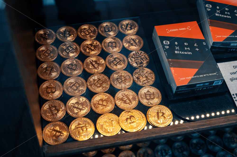 ISTANBUL, TURKEY – MARCH, 2023: View of selling physical Bitcoins at the Grand Bazaar