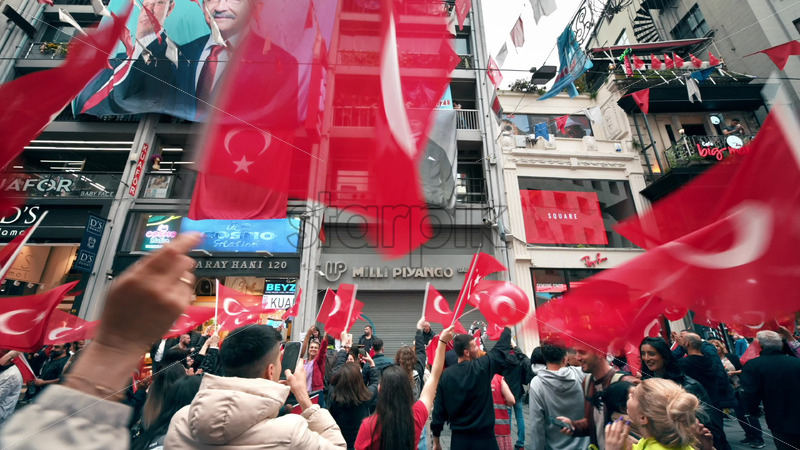 8K Video Multiple people waving turkish flags in city downtown at the Commemoration of Ataturk, Youth and Sports Day in Istanbul, Turkey. Slow motion, Download royalty free stock footage Royalty Free Stock Video Footage