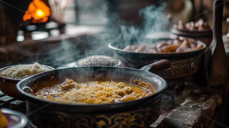 A captivating photograph featuring an Italian pizza, a flatbread adorned with tomato sauce, cheese, and assorted toppings, elegantly displayed on a wooden board in a rustic Italian kitchen. The scene emphasizes the communal aspect of dining, complemented by props like … Read More