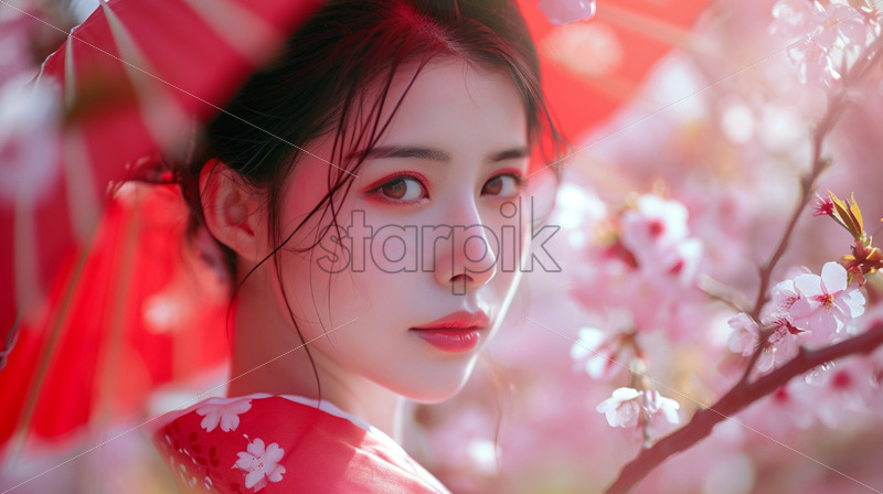 Kyoto, Japan – April 11, 2025: Two Japanese women wearing blue and orange traditional clothes holding umbrellas at the Maruyama Park at sunset Royalty Free Stock Video Footage