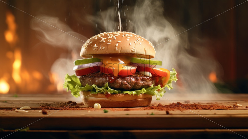 Cook’s hand holding finished burger in a paper cover, BBQ