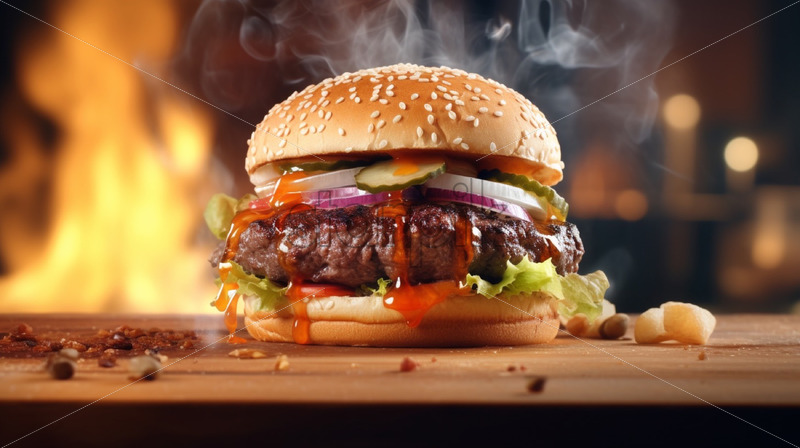A delicious burger with air vapour