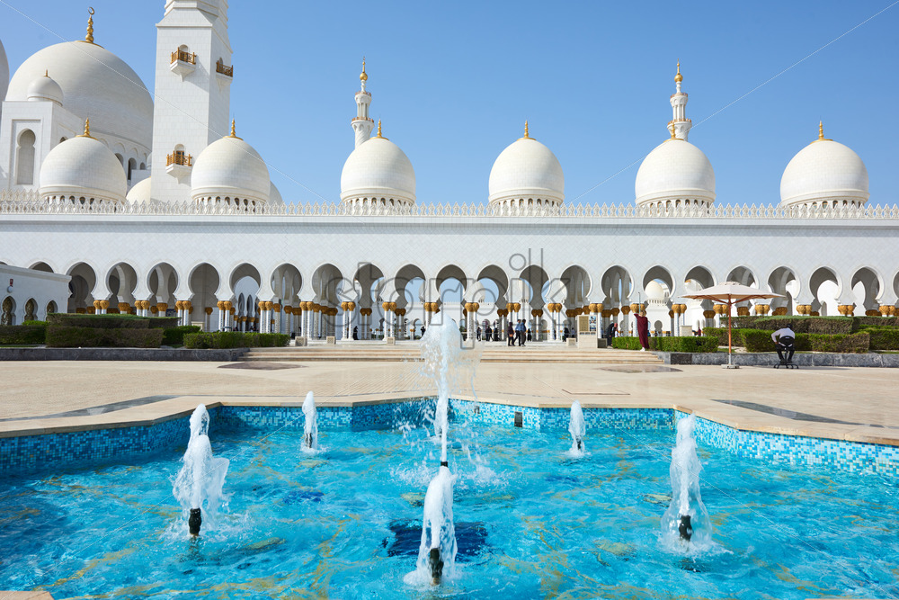 The famous Sheikh Zayed Grand Mosque from Abu Dhabi, United Arab Emirates. A unique toursitic atraction in UAE, that was inspired from middle East’s most beautiful mosques Royalty Free Stock photo