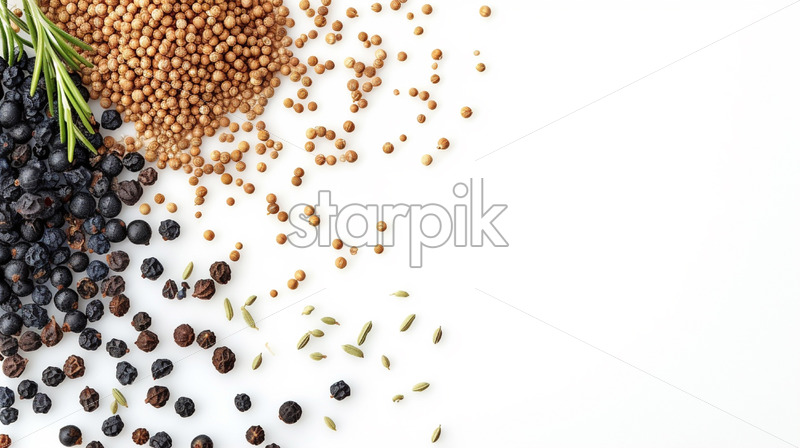 Whole black cardamom pods and white sesame seeds on a wood surface