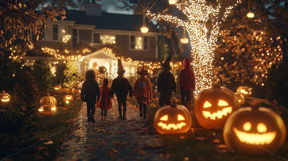 kids celebrating Halloween night Royalty Free Stock Video Footage