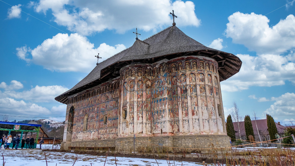 Close view to Curchi Monastery in Old Orhei, Moldova. Ortodox place in Europe with a beautiful architecture painted in a vibrant red colour Royalty Free Stock photo