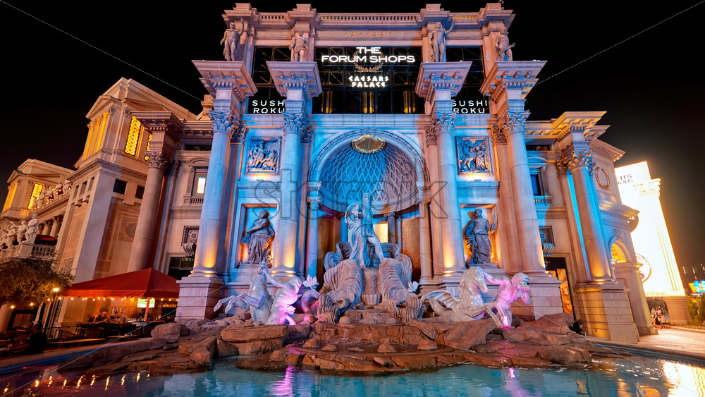 LAS VEGAS, USA – SEPTEMBER 24, 2019: Trevi Fountain near the Forum Shops at Caesars Palace at night