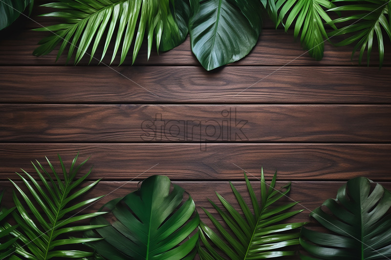 Home » Shop » Uncategorised » Leaves of tropical plants on a wooden background