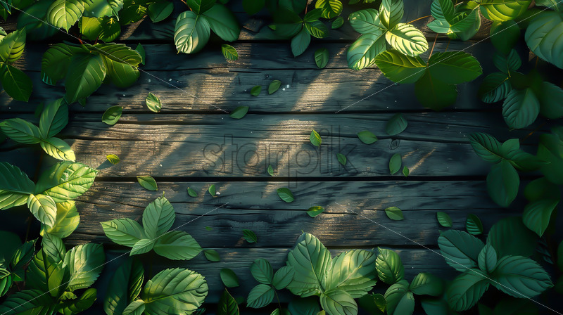 Leaves on a wooden background