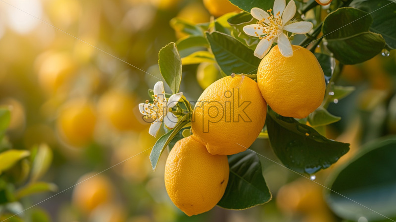 Daylight view to green lime growing on tree. Green leaves and bokeh on background. Negative copy space, place for text. Kakopetria, Cyprus