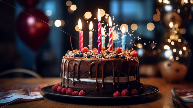The birthday cake adorned with candles, frosting, and vibrant decorations
