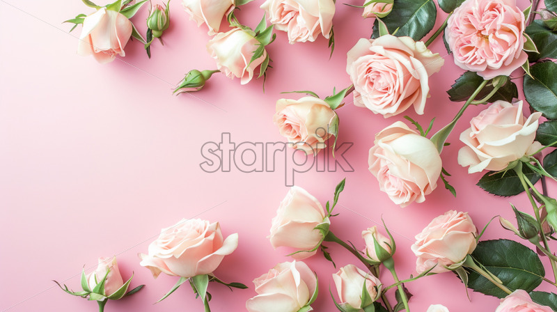 Light pink blank surface, pastel roses flowers