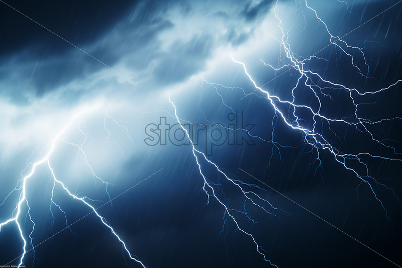 Generative AI an agricultural field and there are black clouds and lightning in the sky