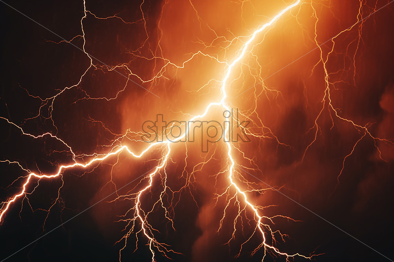 Generative AI an agricultural field and there are black clouds and lightning in the sky