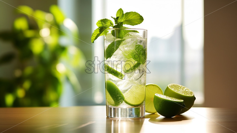 Mint and fruit cocktails, vibrant colors