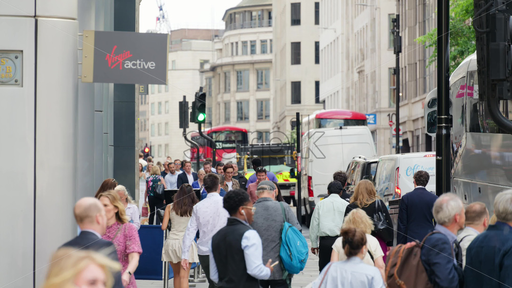 London, England – May 12, 2025: Crowded Cannon Street sidewalk filled with workers and commuters, with buses and traffic in the background Royalty Free Stock Video Footage