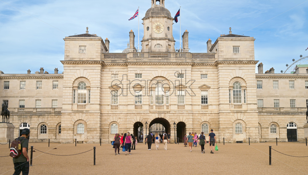 LONDON, UNITED KINGDOM – SEPTEMBER 11, 2023: Horse Guards Parade with multiple walking people