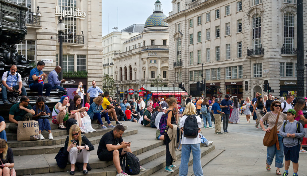 Home » Shop » photo » LONDON, UNITED KINGDOM – SEPTEMBER 11, 2023: Street scape of the city. Piccadilly Circus with people near the Shaftesbury Memorial Fountain and classic buildings