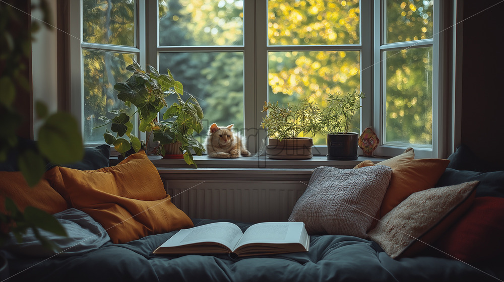 a book on a cosy bed with a cup of coffee, morning leisure time