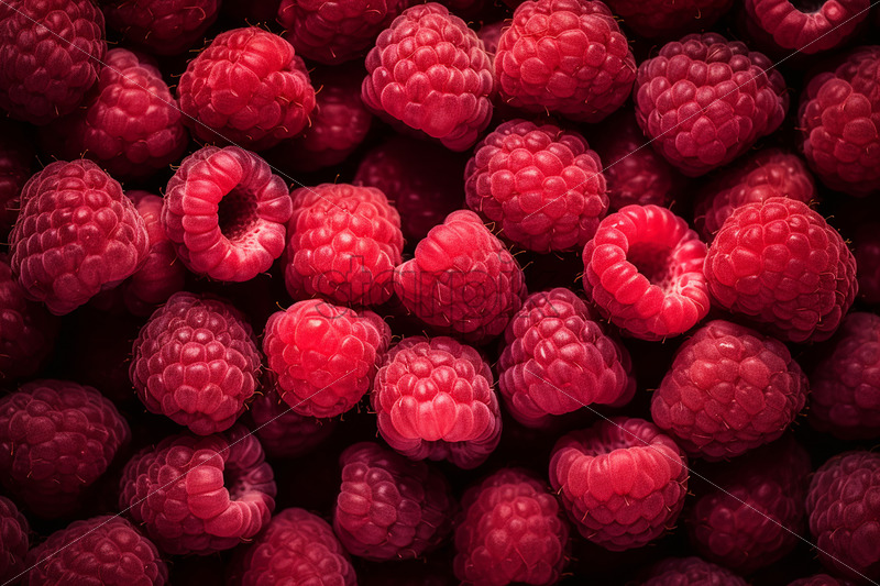 Lots of raspberries, detailed image