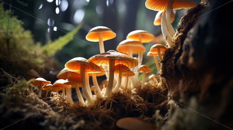 Home » Shop » Uncategorised » Luminescent mushrooms carpeting the jungle floor, casting an otherworldly glow