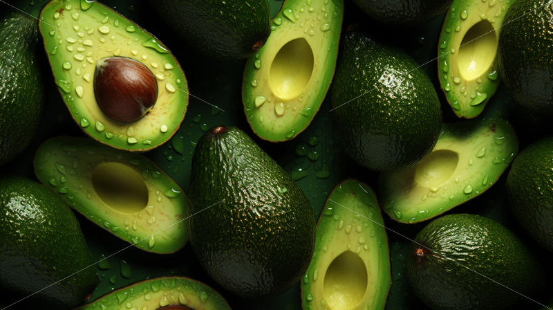 Macro Fresh Juicy half and whole of green avocado fruit background as pattern