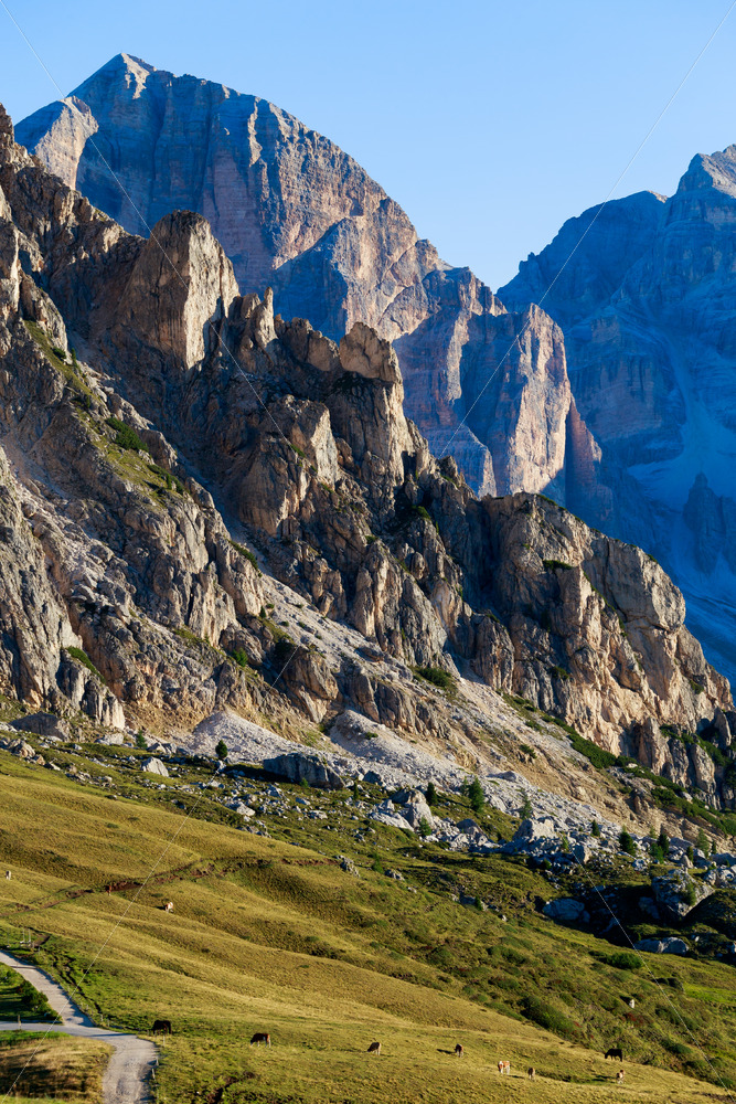 Magical dolomites mountains with blue sky in Italy