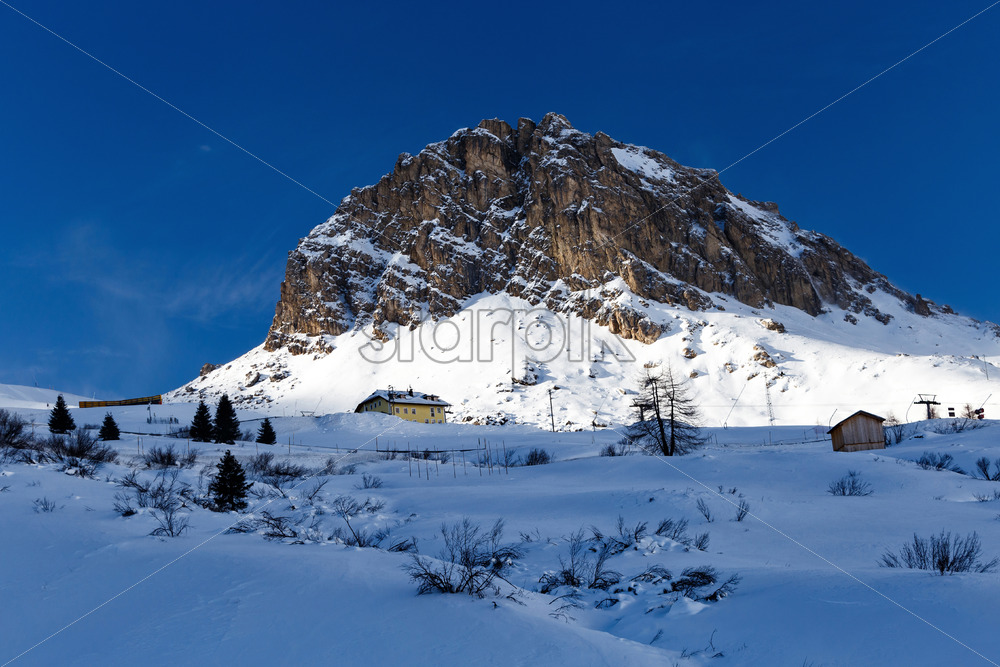 Home » Shop » photo » Magical dolomites mountains with white sunlight and snow in Italy