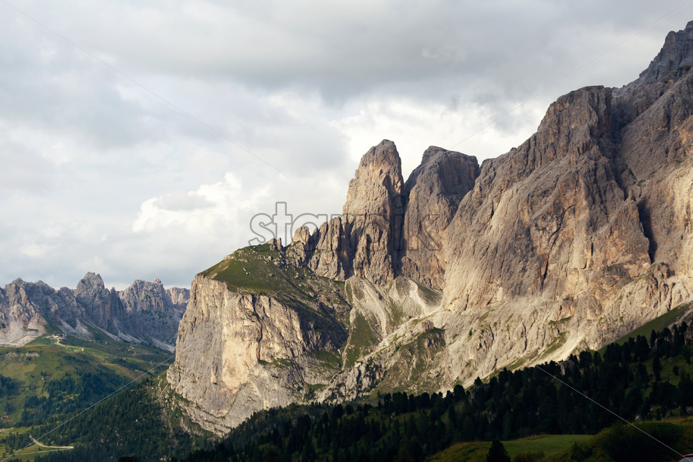 Home » Shop » photo » Magical dolomites mountains with white sunlight in Italy, green forest