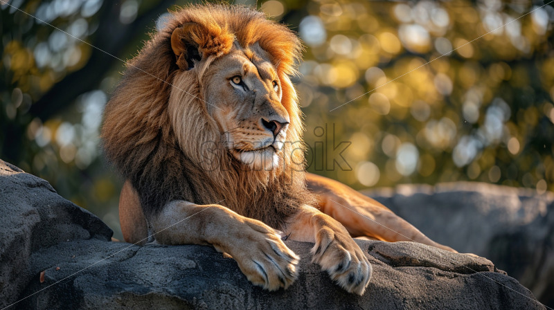 Majestic lion, the undisputed king of the jungle, resting regally on a sunlit rock