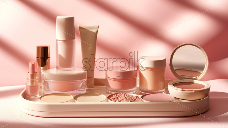 Top view banner of a variety of makeup products