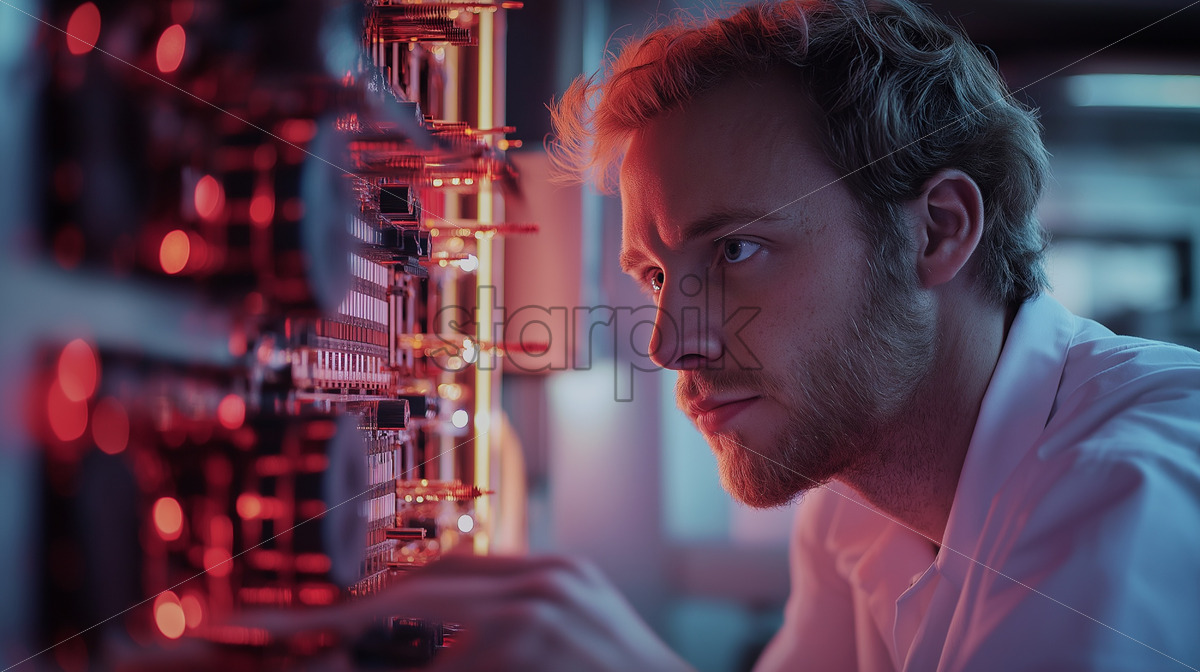 man analyzing quantum computer system