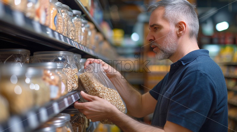 Woman picking tomatoes in a reusable bag in a store. Ecology and Earth Day thematics