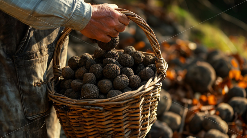 Man collecting truffles harvest in a basket
