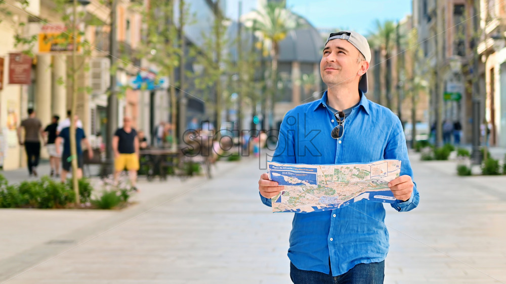 Home » Shop » photo » Man exploring the town with a map in his hands in Alicante, Spain