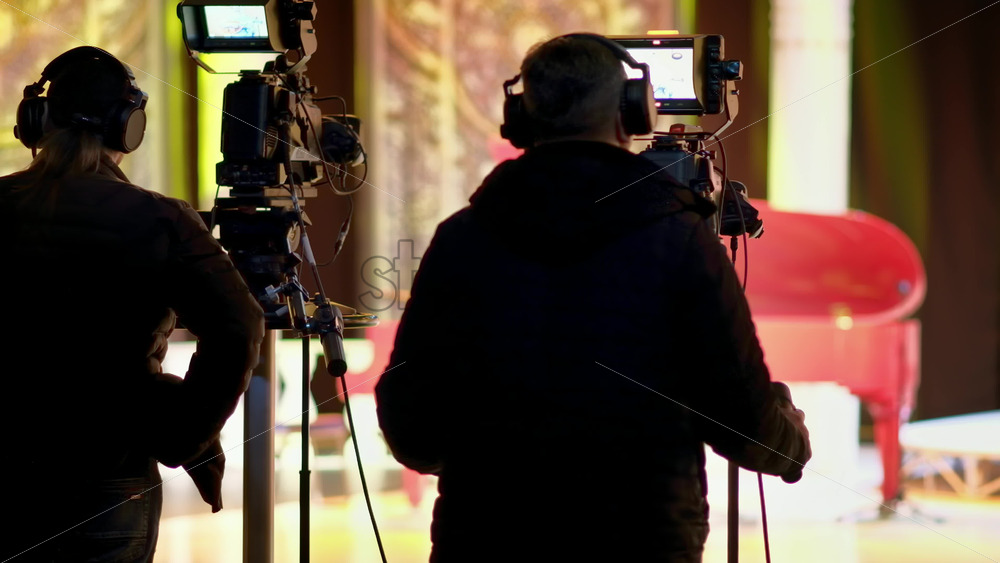 Professional camera filming a show on the backstage of a TV set Royalty Free Stock Video Footage Royalty Free Stock Video Footage