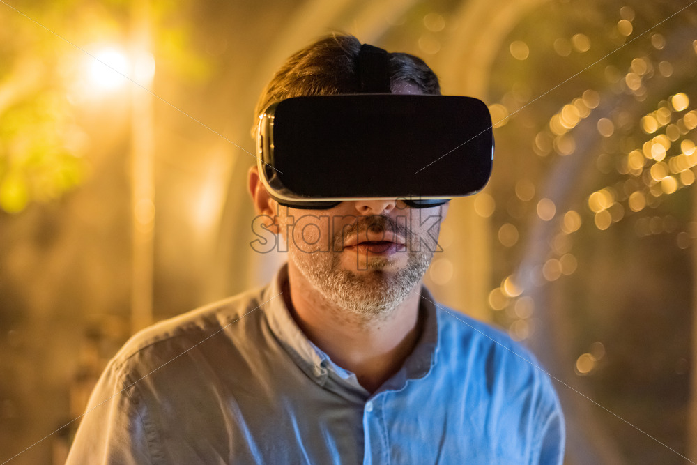 A couple sitting inside transparent bubble tent with illumination at glamping at night. Man kissing his wife’s hand and hugging each other. Lush forest on the background Royalty Free Stock Video Footage