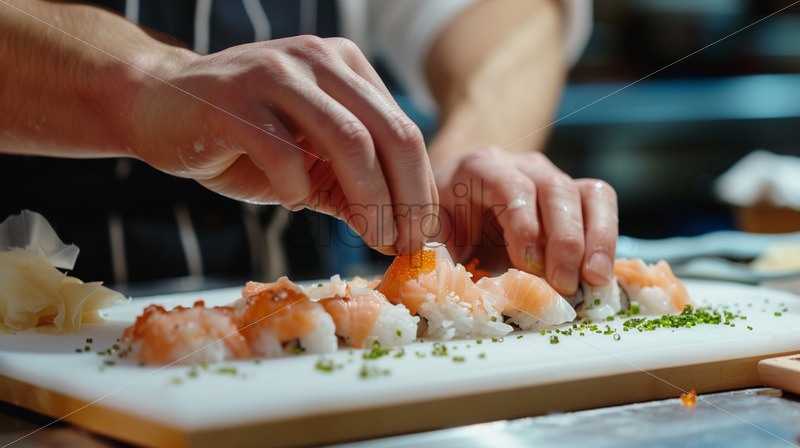 Close up of nigiri on a white plate at the Tsukiji Fish Market in Japan Royalty Free Stock Video Footage