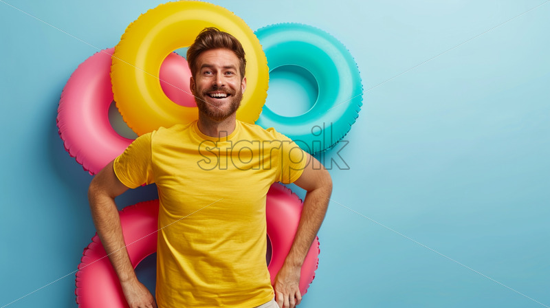 Overhead shot of a young boy playing in a bright blue swimming pool Royalty Free Stock Video Footage