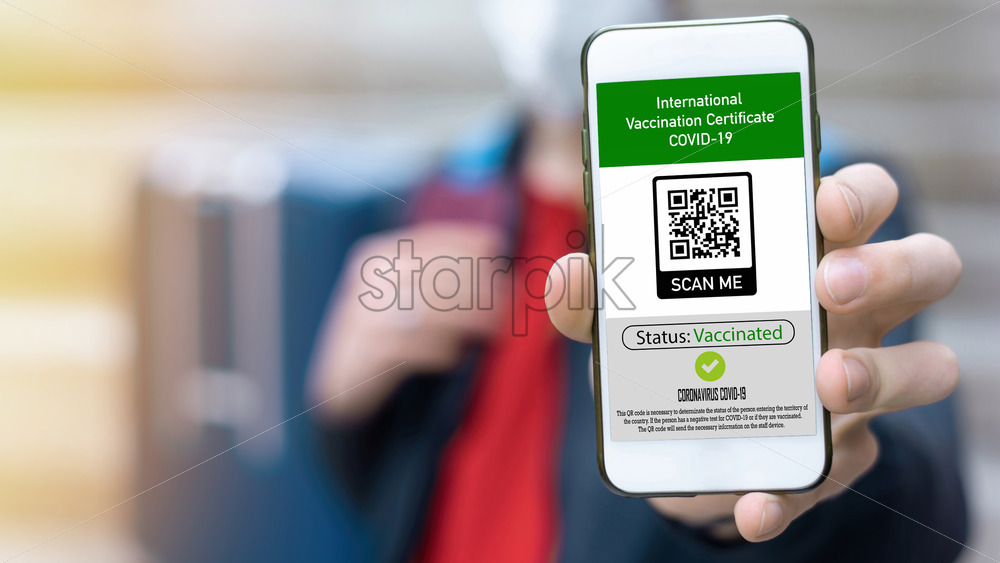 Man holding mask, passport and smartphone with International Vaccination Certificate COVID-19 QR code in a car and going out Royalty Free Stock Video Footage