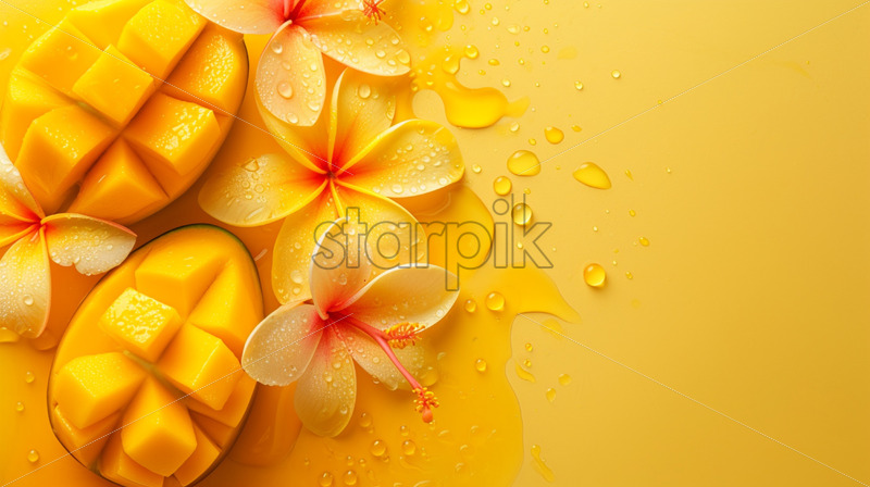 Dragon fruit and pink magnolia flowers, on isolate light pink background