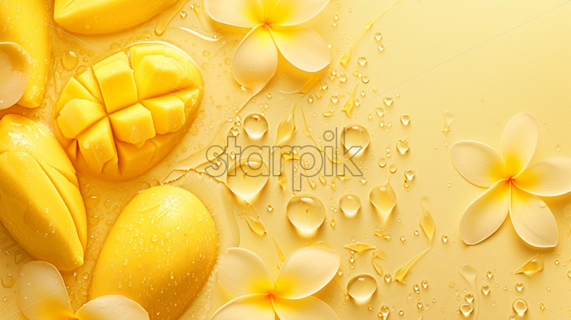 Dragon fruit and pink magnolia flowers, on isolate light pink background
