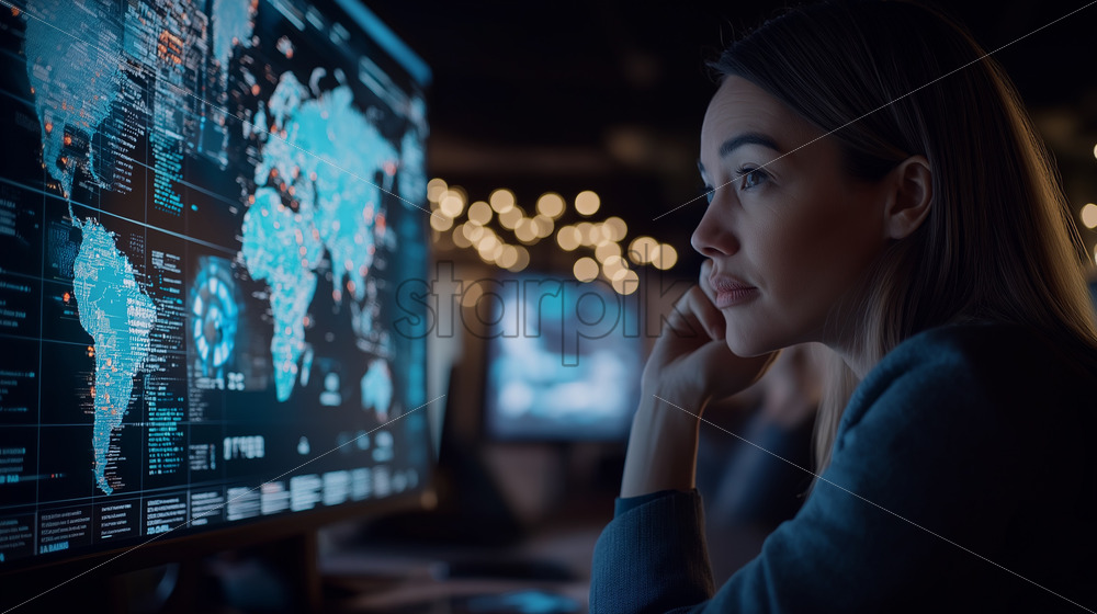 marketing expert surrounded by floating data visualizations and infographics, analyzing consumer behavior